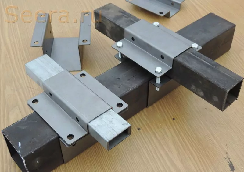 Возможность монтажа заборов без сварки и электричества! В любой момент вы можете разобрать часть ограждения при необходимости, не ломая конструкцию. Крепление предназначено для прямоугольных, либо квадратных труб и лаг. Кронштейн имеет размер полки 60х60, в такой хомут можно вложить профильную труб 60х60; 60х80; 60х100 там, где хоть одна полка на 60 мм. Хомут изготовлен из чётного метала толщиной 1,5 мм с отверстиями для болтов М8 и М6
