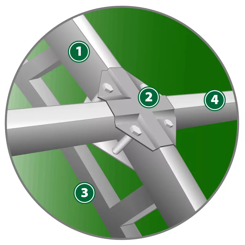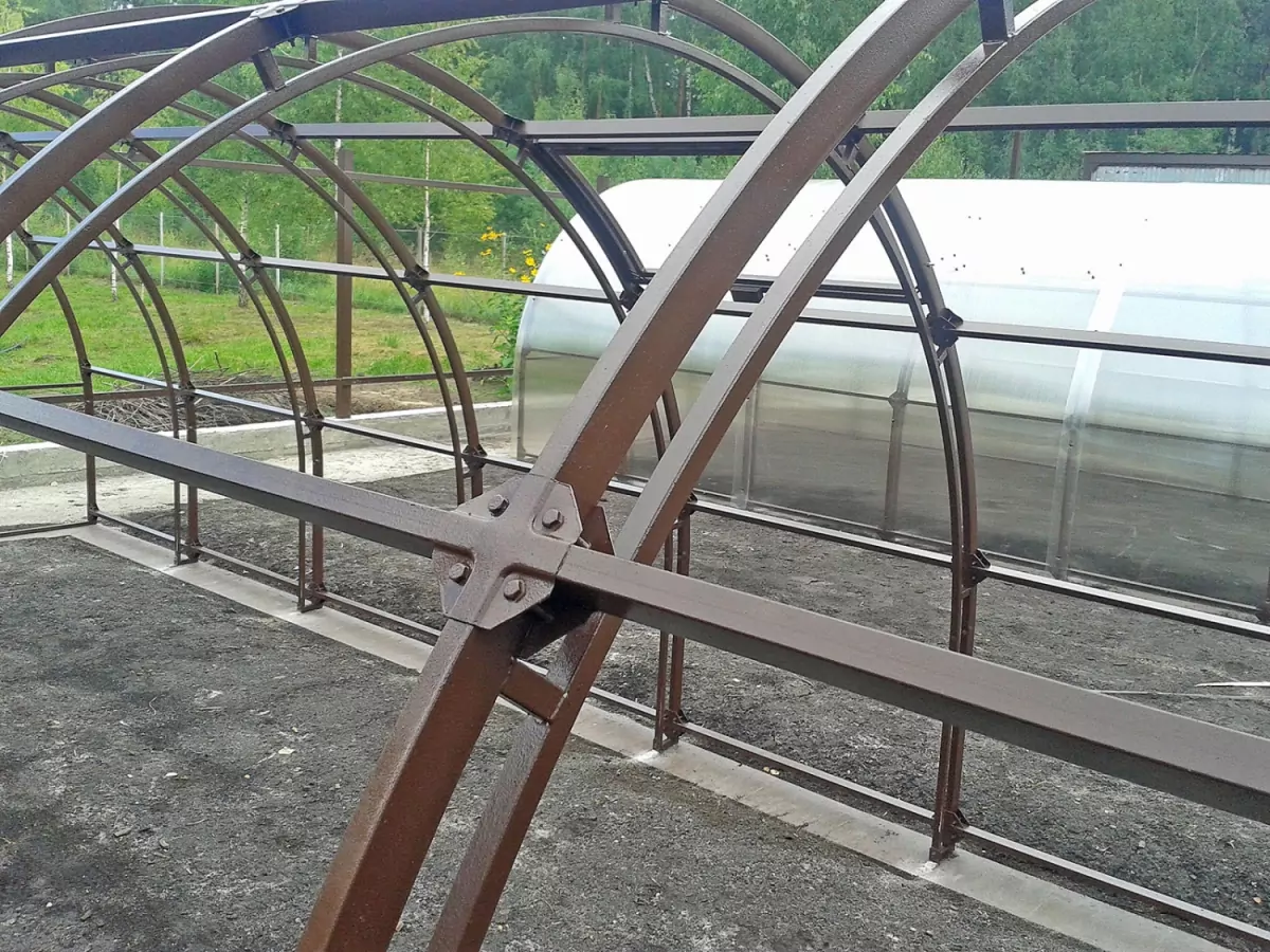 До девяти продольных стяжек-усилителей 40х20 на каждый шаг 0,65 м, "крабовая" система на 4 болтах. Срок службы более 30 лет. Мы используем оцинкованную, профильную трубу производства холдинга «СеверСталь» со 100% защитой от ржавчины и коррозии снаружи и внутри. Оцинкованный каркас увеличивает срок службы теплицы "Орех-2", предотвращая появление коррозии и ржавчины.
