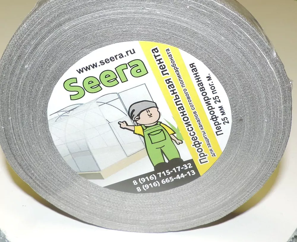 Перфорированной лентой проклеивают торцы сотового поликарбоната. Перфолента защищает соты листа от попадания мельчайших частиц грязи, пыли и насекомых, а также обладает антибактериальным покрытием, препятствующим образованию плесени внутри сот поликарбоната. Не мешает циркуляции воздуха и выводу конденсата из ячеек пластика.