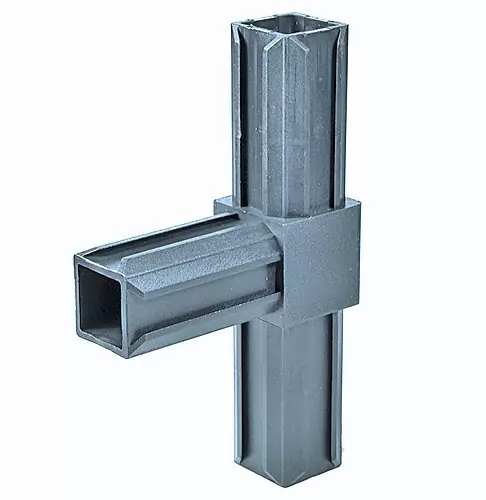 Соединитель пластиковый для трубы используется при самостоятельной сборке вольеров этажерок, стеллажей, столиков и других конструкций. Изготовлен из ПВХ. 3-палый Т-образный крепёж обеспечивает надежное и прочное соединение профильных труб размером 20x20х1.5 мм без использования дополнительных крепежных элементов или сварки. Произведено в Европе