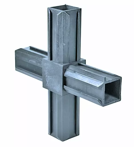 Соединитель пластиковый Х-образный для квадратной трубы используется при самостоятельной сборке этажерок, стеллажей, вольеров, столиков и других конструкций. Изготовлен из ПВХ. 4-палый Х-образный крестовой соединитель обеспечивает надежное и прочное соединение профильных труб размером 20x20х1.5 мм без использования крепежных метизов и сварки.