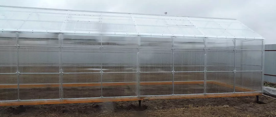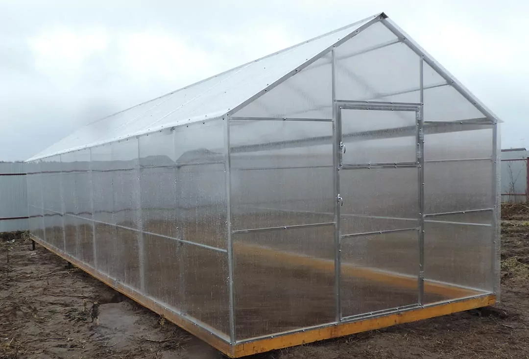 Фермерская теплица с шириной 3 метра, высотой стенки 1.75 м, любой длинны. Две двери и две форточки. Арки расположены через 98 см и соединены между собой десятью усилителями-стяжками + три оцинкованных конька сверху и по бокам. В теплице используется оцинкованная внутри и с наружи труба с креплением Краб-Система. Размер профильной трубы 40х20 как по основанию, так и в арках и стяжках. Арка и торец теплицы не разборные, на сварке, что повышает её прочность в разы.