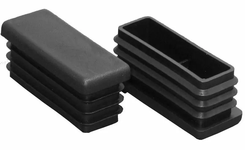 Пластиковые заглушки для квадратных труб обладают коробчатой конструкцией с заглубляемой внутрь трубы частью длиной 13 мм с тремя ребрами и шляпкой толщиной 5 мм. Шляпка при формовке приобретает текстуру, которая повышает привлекательность изделия. Ребра на заглубляемой части обеспечивают плотное заклинивание в трубном прокате сечением 20х40 мм с толщиной стенок до 3 мм.