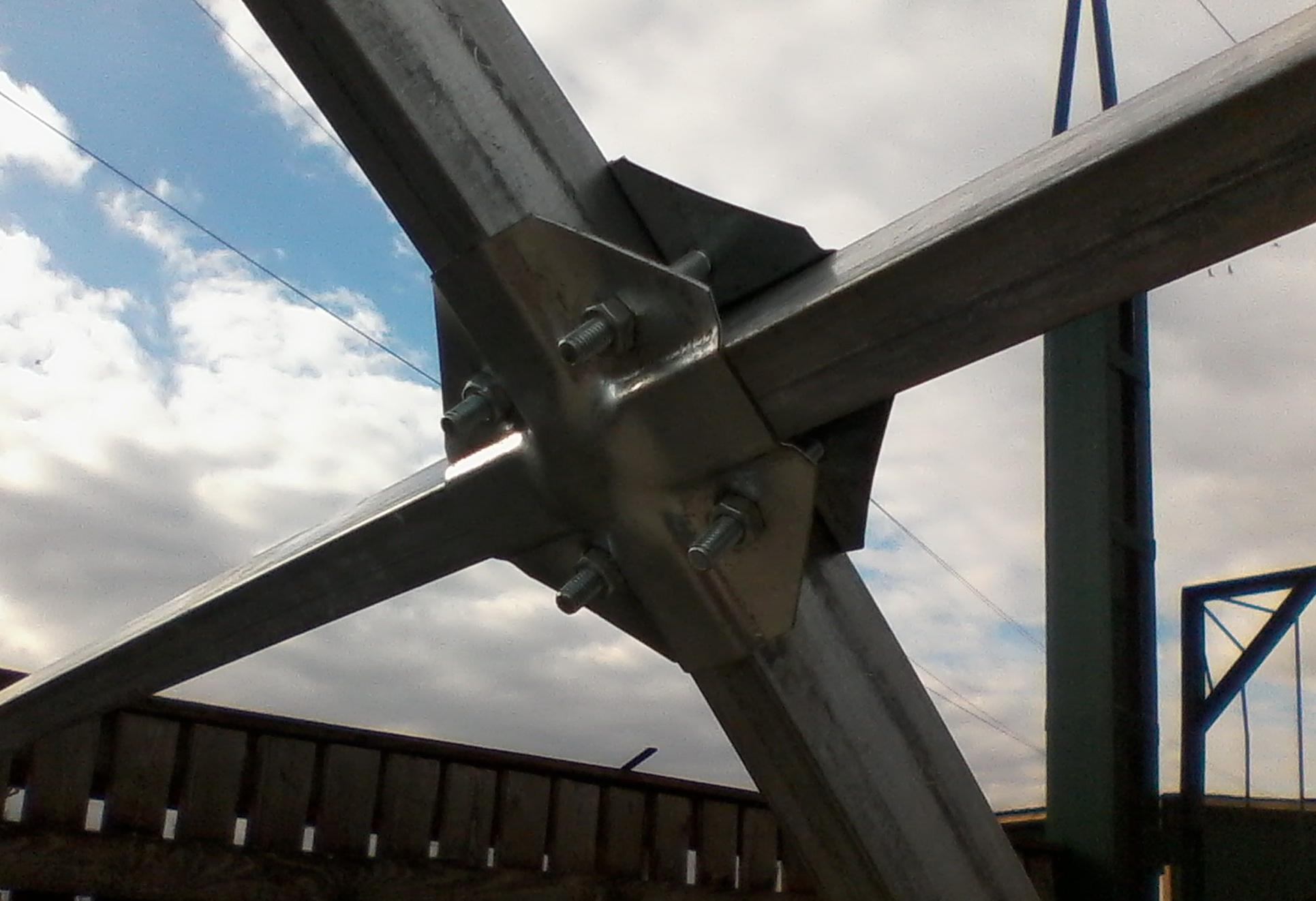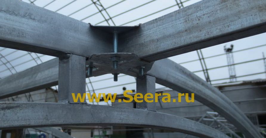 Двойная дуга. Девять стяжек 40х20 на метр, универсальный крепёж на 4 болтах. Срок службы более 30 лет.
