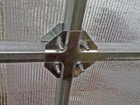 Эта теплица стоит рангом выше всех сверхпрочных теплиц. Теплица имеет оригинальные, сверх усиленные, оцинкованные, двойные дуги 40х20 и 20х20, выпускается только с метровым пролетом между арками и креплением Краб-система, самый лучший способ крепления на сегодняшний день.
