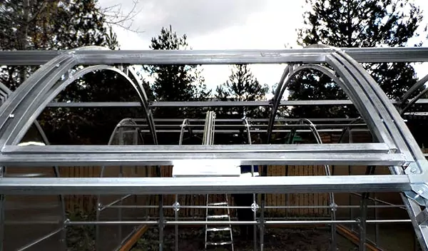 Эта модель способна выдерживать значительную снеговую нaгрузку 250 кг и более на квадратный метр. Для повышения показателя несущей конструкции каркаса, арки соединены пятью стяжками + две по основанию, всего семь стяжек. Перемычки и дуги находятся в одной плоскости.